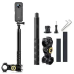 The 360° adjustable bracket ensures perfect camera positioning from any angle, while the invisible selfie stick creates a floating camera effect when used with Insta360 cameras. Built with a high-strength, vibration-resistant clamp, it provides a stable and secure hold even on rough terrains.